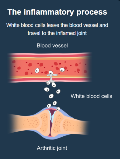 The more inflamed the joint becomes, the more the white blood cells are attracted to it, so the process is cyclical.